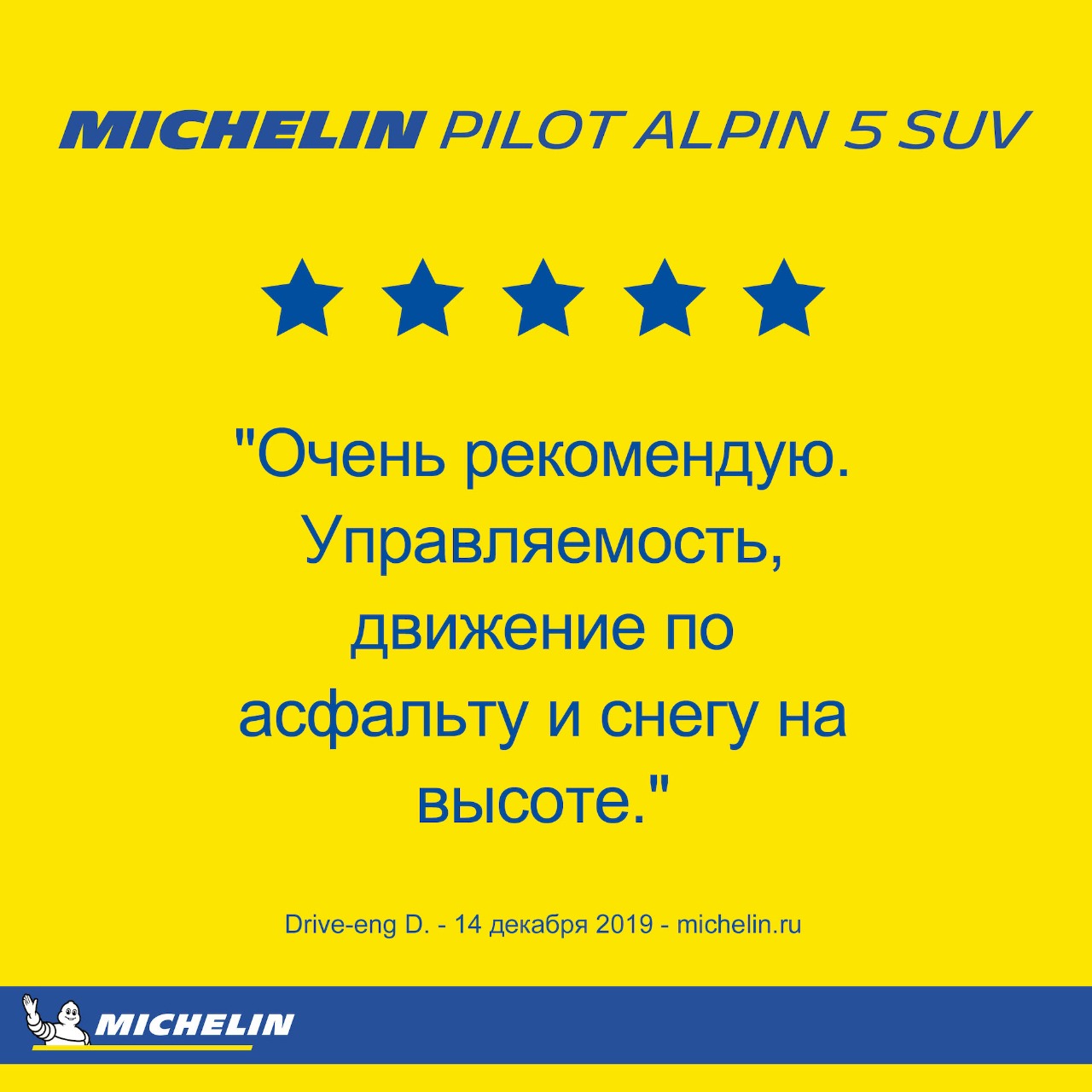 Зимова шина Michelin Pilot Alpin PA5 SUV призначена для позашляховиків та кросоверів. Є модернізованою версією однойменної моделі для легкових автомобілів, що відрізняється конструкцією каркасу. Вона була адаптована з урахуванням збільшеної ваги транспортних засобів з приводом на чотири колеса. Розроблялася з урахуванням погодних умов про «європейських» зим. Характеризується стабільністю на засніженому покритті, стійкістю на високій швидкості на сухому асфальті, відмінною ефективністю при уповільненні, а також паливною економічністю та тривалим терміном служби.